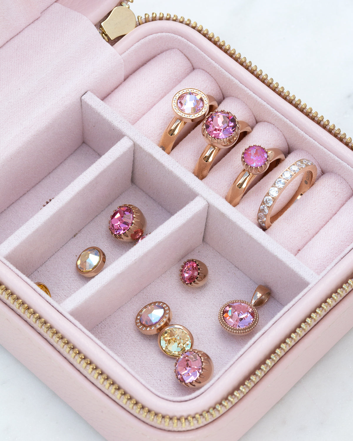 All Qudo tops can be added to the rings, earring charms and necklace pendants.