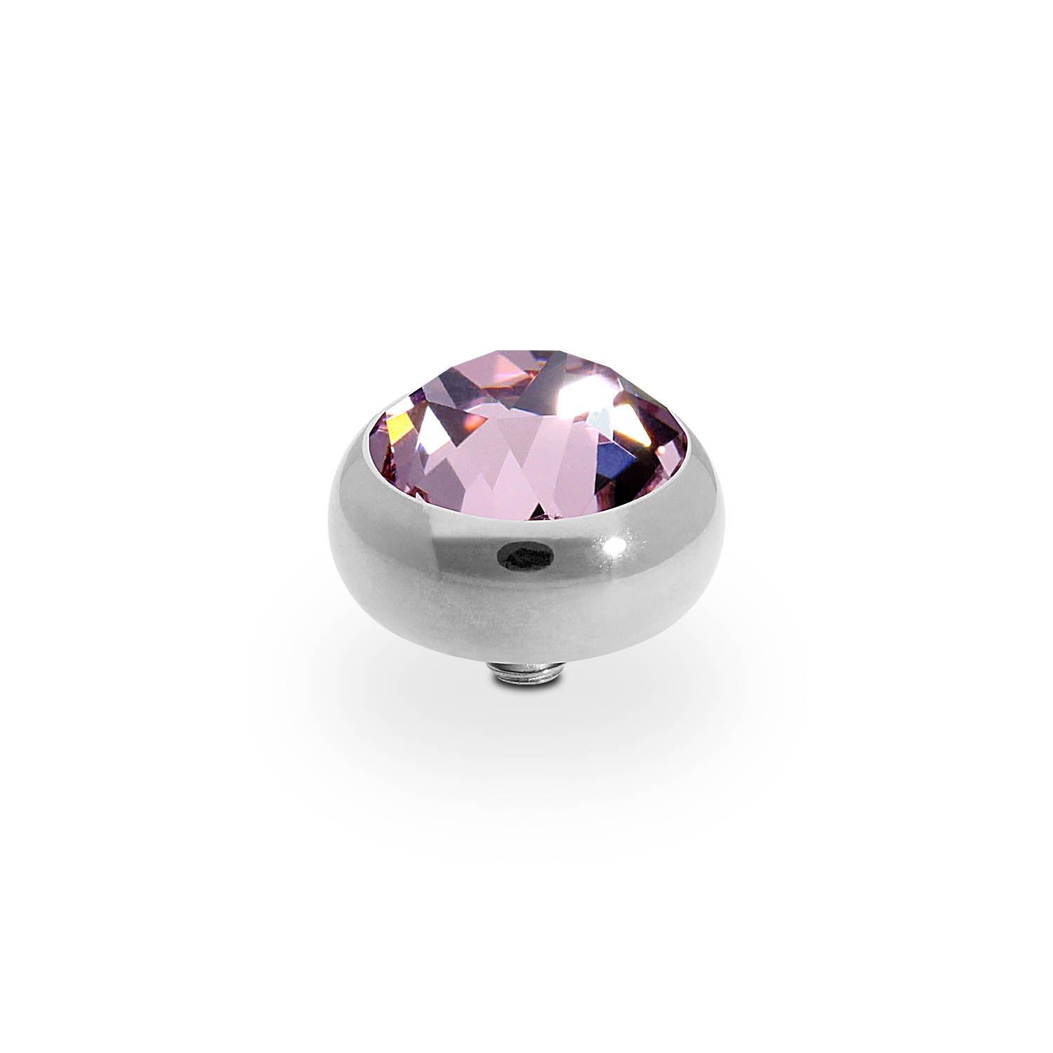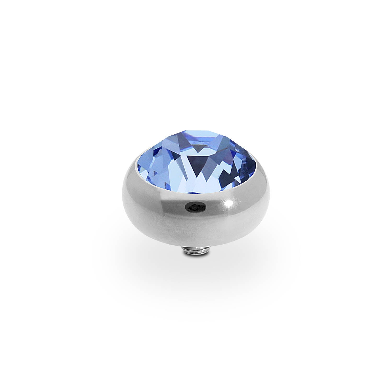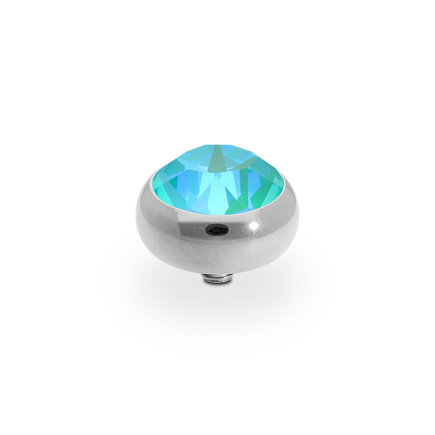 Hand crafted top in stainless steel plated polished with silver, with a European Crystal of your choice. This interchangeable top is compatible with any interchangeable base.