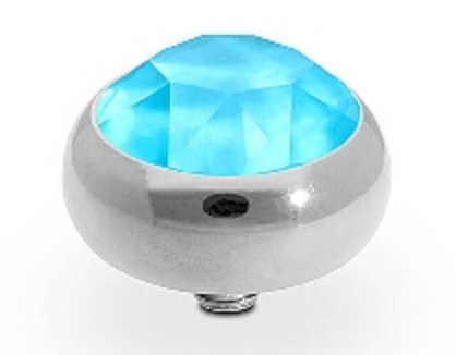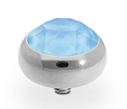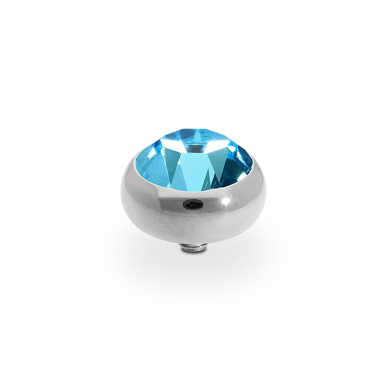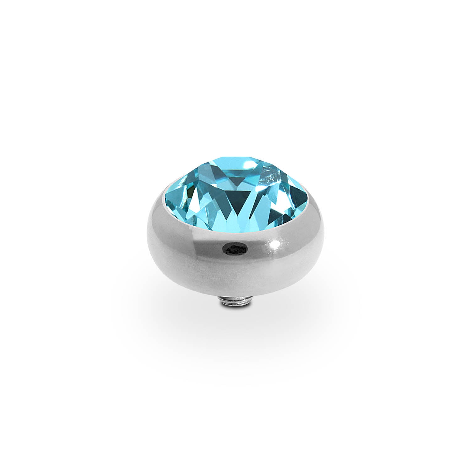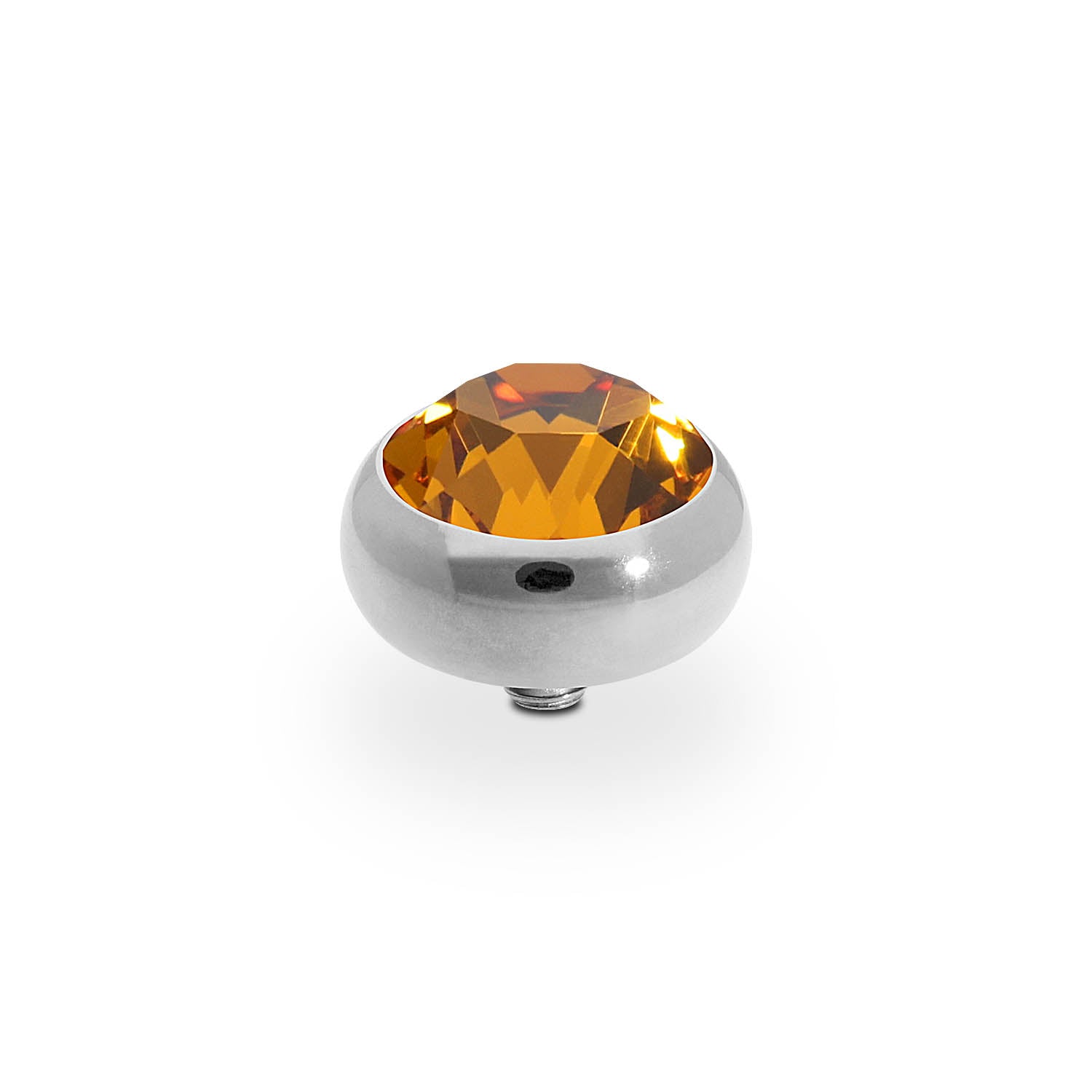 Hand crafted top in stainless steel plated polished with silver, with a European Crystal of your choice. This interchangeable top is compatible with any interchangeable base.