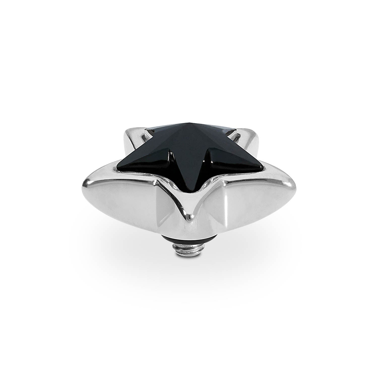 Hand crafted top in stainless steel plated with 14ct gold rose gold or polished silver and fitted with a European Crystal in a star shaped setting. This interchangeable top is compatible with any interchangeable base.